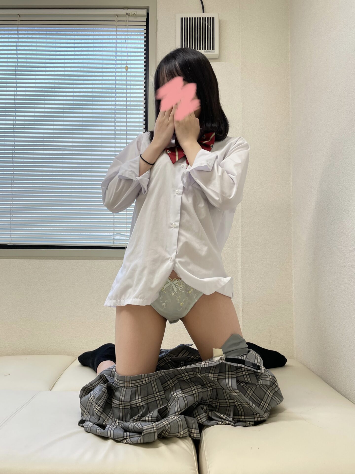 もじもじしながらも言われるがままに曝け出した淡色の薄布